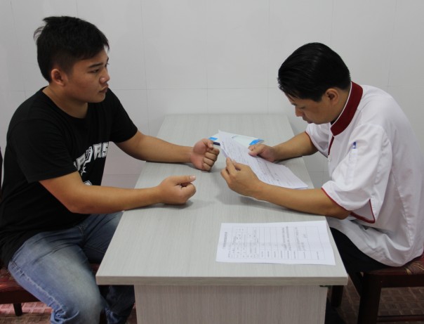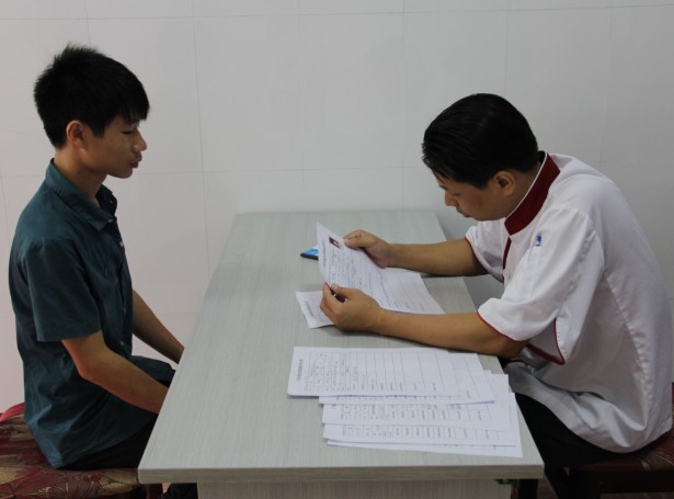 2013年7月29日,广西华南烹饪学校学生蔡卓明等8名毕业生在就业指导中心朱主任的带领下来到了荔园山庄面试。
