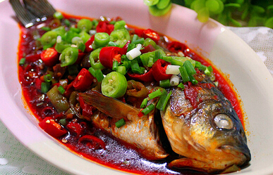材料:鲫鱼(1条)、青辣椒50克、红辣椒50克、姜10克、香葱10克、豆瓣酱15克、2食用油20毫升、鸡精2克、酱油5毫升、糖2克、料酒5毫升。