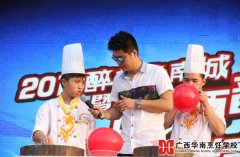 7月16日晚,2015醉美华南城广西电视台综艺频道第二届观众节暨啤酒音乐节在华南城3、4号广场前主舞台震撼上演。 广西电视台综艺频道第二届观众节暨啤酒音乐节我校学子表演现场 气球上切肉丝 精湛的刀工技艺 我校学子