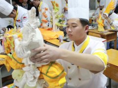 广西华南烹饪学校第二十届烹饪大赛在明秀校区开赛以来精彩不断吸引了众多家国内知名新闻媒体的目光,以及无数美食爱好者的火爆参与。在雕刻比拼赛场上更是竞争激烈,个个都朝着冠军的目标前进。雕刻赛场上,随着评委
