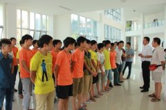 一个个标准的军姿,一张张黝黑的脸庞,2013年9月24日,广西华南烹饪学校西点三班军训汇演在大学路校区举行,新生学子们完成了入学第一课军训,飒爽的英姿和青春的风采赢得了满堂彩。 教官和同学们整装待发 出席本次