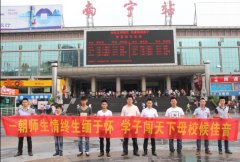 2013年7月28日,广西华南烹饪学校大厨精英114班兰朋等8名毕业生学生赴上海鹿港小镇公司就业。 上午8点左右,华南学子们就带着他们早已整理好的行囊,怀着无限期待与不舍的心情,等待出发。或许这天对广西华南烹饪学