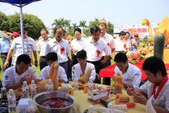 9月29日,八桂田园内锣鼓喧天,彩旗飘扬,处处洋溢着欢乐喜庆的气氛,广西农业厅第九届八桂田园西甜瓜节盛大开幕。本届西甜瓜节为期9天,活动内容丰富,为双节期间的南宁市民们呈上精彩纷呈的旅游大餐。 本次活动还