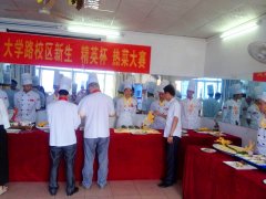 10月28日上午,广西华南烹饪学校大学校区新生精英杯热菜大赛圆满的落下帷幕了。虽说是新生,但是经过一个阶段的学习,这些来自四面八方的同学们,做起菜来都有模有样。 老师们在对学生作品进行点评 赛场上,他们娴熟