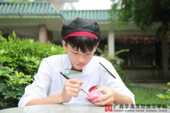 谭子康,2014年6月他进入广西华南烹饪学校,2016年4月毕业。经过两年的学习,谭子康在学校不仅学到了扎实的基本功,还接触到了很多自己感兴趣的科目,比如热菜装饰,果酱、雕刻等。除此之外,他平时还积极参加学校的